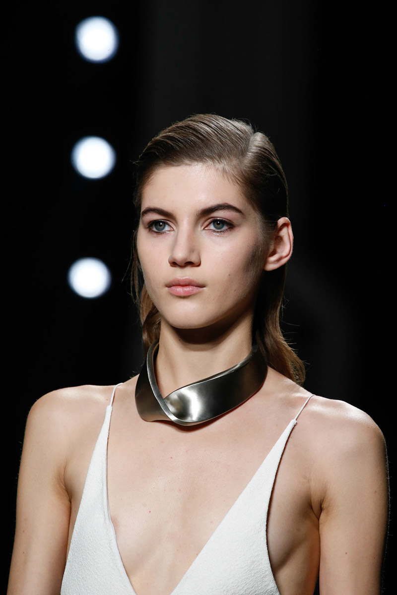 The sculptured metal chokers that adorned the necks of Narciso Rodriquez’s collection during NYFW epitomized sophistication with a dramatically effective minimalistic element.