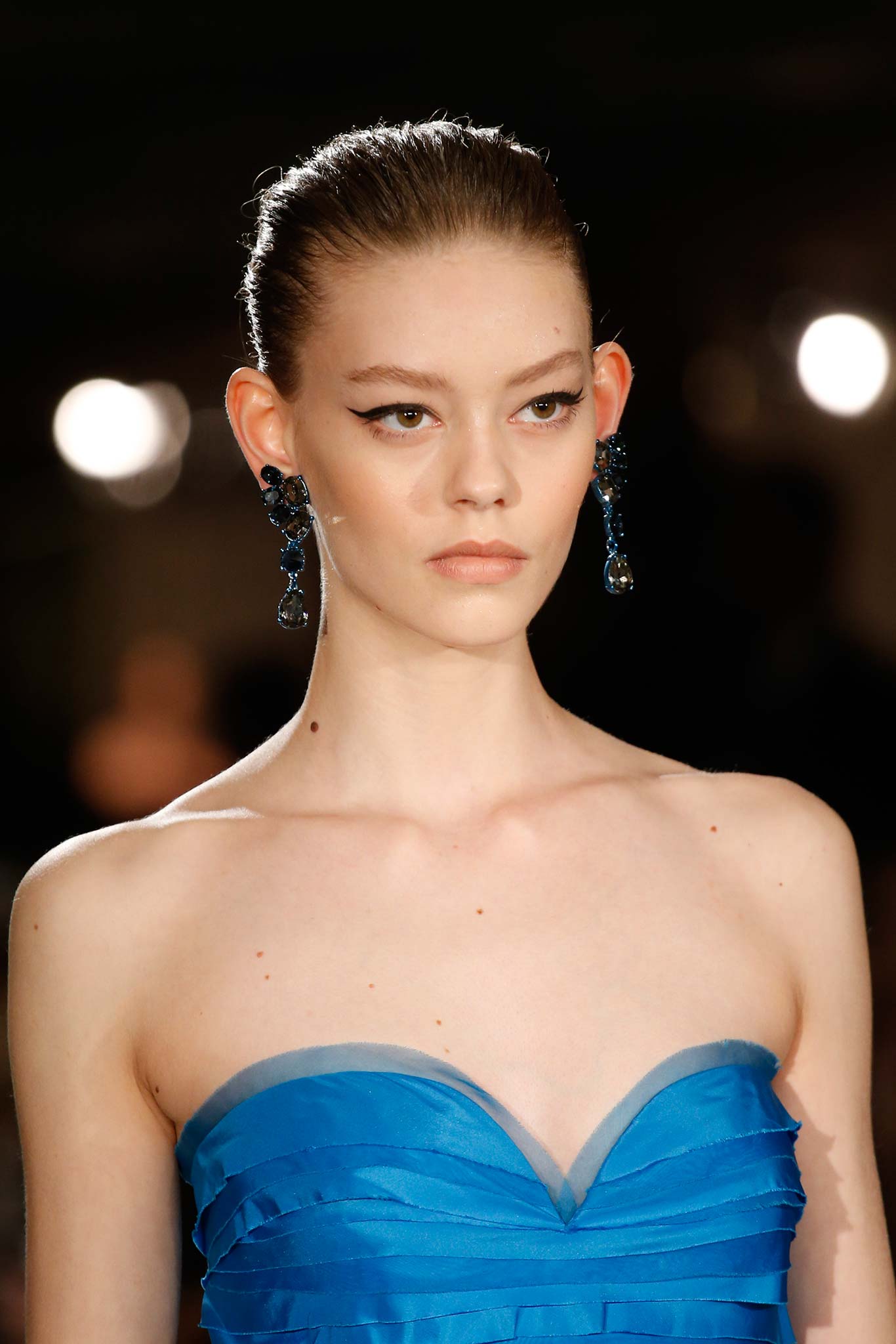 Peter Copping with his inaugural Oscar De La Renta Collection proved the accessories could be just as elegant and ethereal as the gowns themselves. Standout earrings like these blue gems are sure to grab the attention of the camera ready paparazzi.