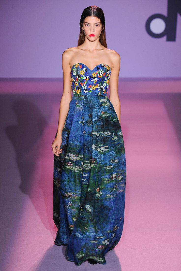 What started off as a largely monochromatic palette, progressed with clever pops of colour and quickly evolved into dresses that were complete works of art covered in watercolour-like paintings and overlayed with more texture and detailing.