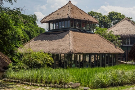 “The facilities were just beautiful and the site was simply breathtaking. The entire compound is built from local, low impact, natural materials. We saw the unbelievable bamboo cathedral thatched with alang alang that looks like an upside down boat and serves as the showroom for the jewellery. Another fascinating structure was the outdoor terrace, an antique timber structure with natural grass roof at the heart of the compound where the design team works. The factory has an in-house kitchen where the workers eat every day and the food was all local organic produce.