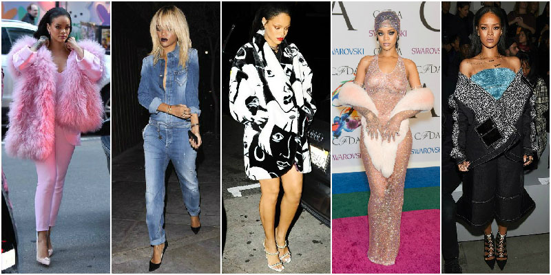 If there is one thing Rihanna has taught us, it’s that fashion rules were made to be broken. Rihanna embraces any and all trends and pulls them off effortlessly every time. Onstage Rihanna’s fashion choices have us expecting the unexpected, but off stage her street style is just as fierce. Rihanna reigns supreme of the grunge glamour look rocking all black everything and she shows us how to pull off slick leather with pearls and tracksuit pants with stilettos. This pop star’s badass attitude and avant-garde style combinations are simply unmatched. From her denim on denim pairings to her sporty separates and underwear worn as outerwear, Rihanna’s risqué trademark ensembles prove that a little S&M goes a long way. Rihanna glams up any outfit by making sure her lips always match her clothes while her accessories prove that its all in the details. Rihanna isn’t afraid to borrow looks from the boys and layers up each outfit with an item even crazier then the last. We love her fearless approach to fashion, but as much as we envy and try to emulate her style, we have to admit that there are some looks that only Rihanna can pull off (the no pants look being one of them), because nobody does it like RiRi.
